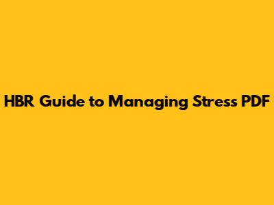 HBR Guide: Master Stress Management (PDF)