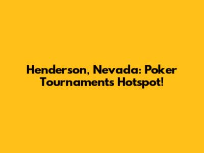 Henderson, Nevada: Poker Tournaments Hotspot!