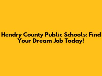 Hendry County Public Schools: Find Your Dream Job Today!