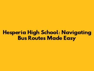 Hesperia High School: Your Guide To Bus Routes