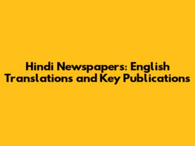 Hindi Newspapers: English Translations And Key Publications