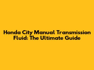 Honda City Manual Transmission Fluid Guide