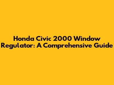 Honda Civic 2000 Window Regulator: Troubleshooting & Replacement