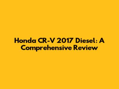 Honda CR-V 2017 Diesel: A Comprehensive Review