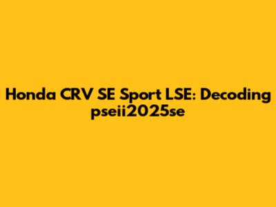 Hopefully, this breakdown helps you understand the Honda CRV SE Sport LSE and the possible meaning of "pseii2025se." Good luck with your car search!
