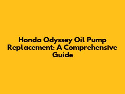 Honda Odyssey Oil Pump Replacement: A Comprehensive Guide