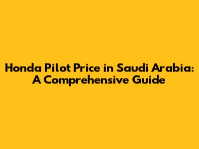 Honda Pilot Price In Saudi Arabia: A Comprehensive Guide