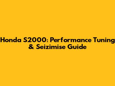 Honda S2000: Performance Tuning & Seizimise Guide