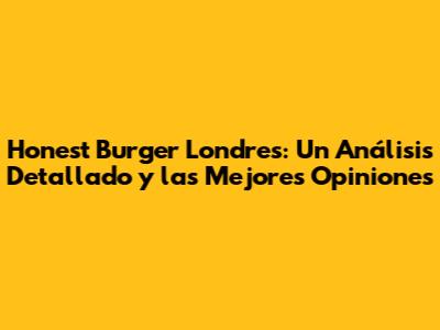 Honest Burger Londres: ¿Vale La Pena? Análisis Y Opiniones