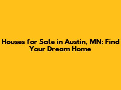 Hey guys! Are you looking to settle down in a friendly, vibrant community? Then look no further than Austin, Minnesota! This charming city offers a mix of small-town vibes and big-city amenities, making it a fantastic place to call home. But navigating the real estate market can be tricky, so let's dive into everything you need to know about finding houses for sale in Austin, MN.