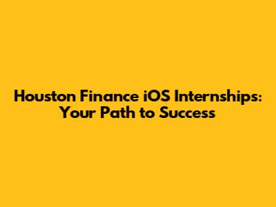 Houston Finance IOS Internships: Your Path To Success