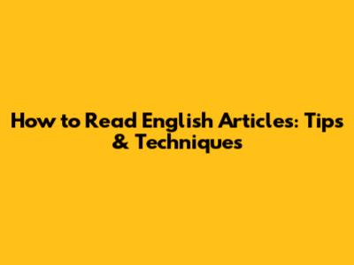 How To Read English Articles: Tips & Techniques