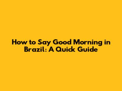 How To Say Good Morning In Brazil: A Quick Guide
