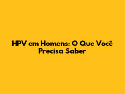 HPV Em Homens: O Que Você Precisa Saber