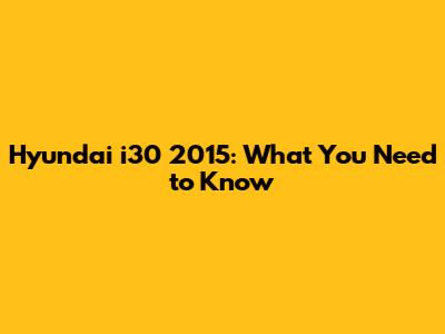 Hyundai I30 2015: What You Need To Know