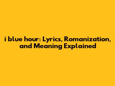 I Blue Hour: Lyrics, Romanization, And Meaning Explained