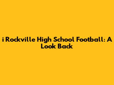 I Rockville High School Football: A Look Back