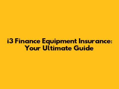 I3 Finance Equipment Insurance: Your Ultimate Guide