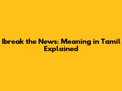 Ibreak The News: Meaning In Tamil Explained