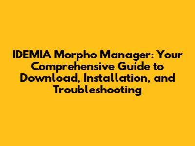 IDEMIA Morpho Manager: Download, Installation, And Troubleshooting