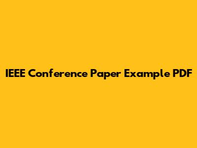 Why You Need an IEEE Conference Paper Example PDF