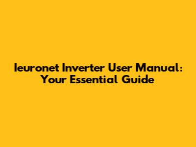 Ieuronet Inverter Manual: Your Go-To Guide