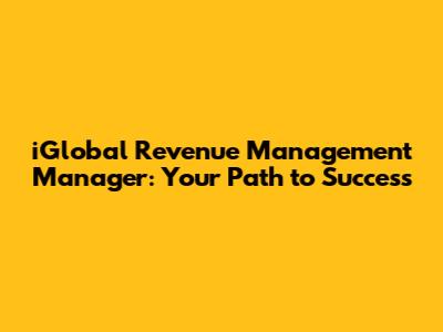 IGlobal Revenue Management Manager: Your Path To Success