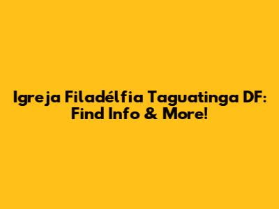 Igreja Filadélfia Taguatinga DF: Find Info & More!