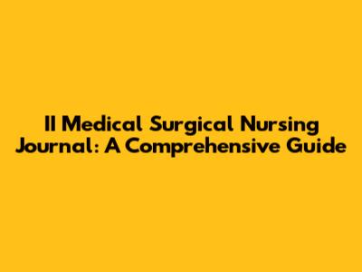 II Medical Surgical Nursing Journal: A Comprehensive Guide