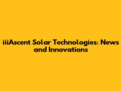IiiAsecent Solar: Latest News And Innovations