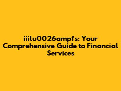 Hey there, finance enthusiasts and anyone curious about navigating the world of money! Let's dive headfirst into iiilu0026ampfs financial services. I'm gonna break down what they are, what they offer, and how they might fit into your financial journey. Buckle up, because we're about to embark on a ride through investments, loans, and all things money-related!