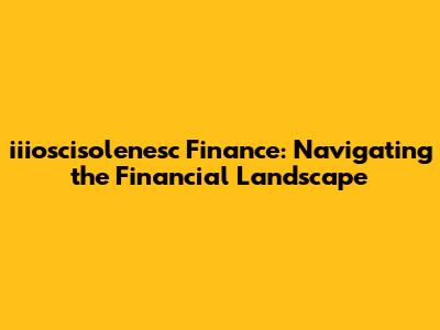 Iiioscisolenesc Finance: Navigating The Financial Landscape