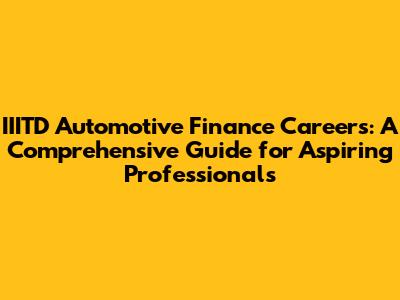 Hey everyone! If you're an IIITD grad or a student with your sights set on the exciting world of automotive finance, you've landed in the right place. This guide is designed to give you the lowdown on everything you need to know about pursuing IIITD Automotive Finance Careers. We'll cover the essential skills, the types of roles available, and how to position yourself for success in this dynamic industry. So, buckle up, because we're about to take a deep dive into the fast-paced realm of automotive finance!