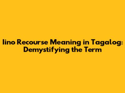 Iino Recourse Explained: Meaning In Tagalog