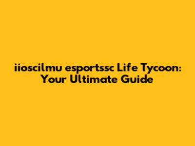 Iioscilmu Esportssc Life Tycoon: Your Ultimate Guide