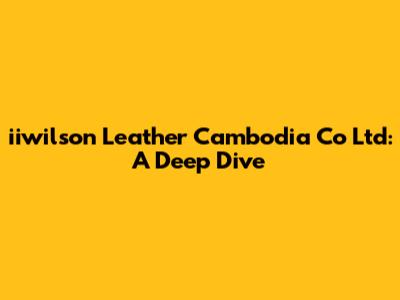 Hey guys! Ever wondered about iiwilson Leather Cambodia Co Ltd? Well, you're in the right place! We're going to explore everything you need to know about this company. From its history and operations to its impact on the Cambodian economy, we've got you covered. So, buckle up and let's dive in!