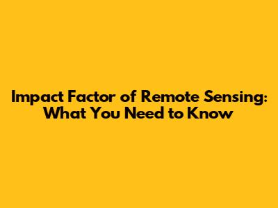 Impact Factor Of Remote Sensing: What You Need To Know