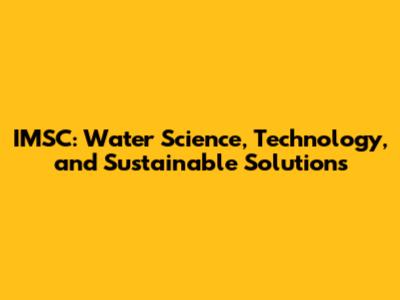 IMSC: Water Science, Technology, And Sustainable Solutions