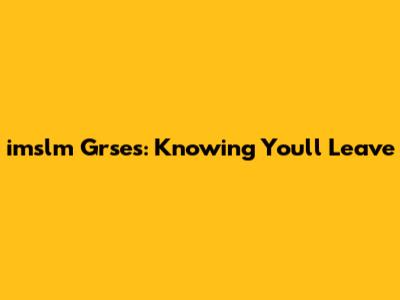 Imslm Grses: Knowing You'll Leave