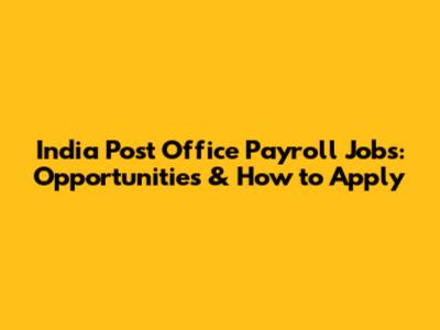 India Post Office Payroll Jobs: Opportunities & How To Apply