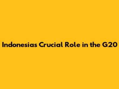 Indonesia's Crucial Role In The G20