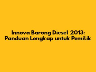 Hey guys! So, you're looking for info on the Innova Barong Diesel 2013? Awesome choice! This article is your one-stop shop for everything you need to know, from the nitty-gritty of the pajak (taxes) to the cool specs and even some handy tips to keep your ride running smoothly. Let's dive right in, shall we?