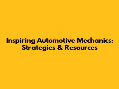 Inspiring Automotive Mechanics: Strategies & Resources