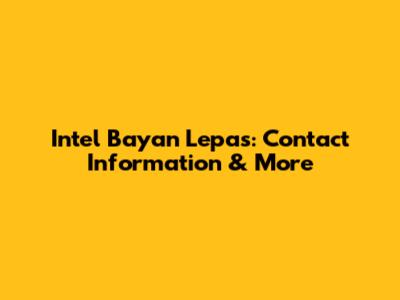 Intel Bayan Lepas: Contact Information & More