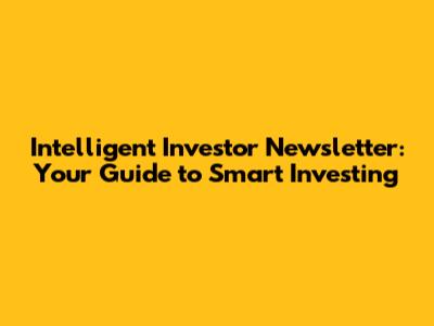 Intelligent Investor Newsletter: Your Guide To Smart Investing