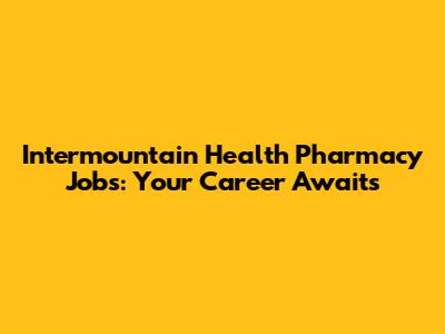 Intermountain Health Pharmacy Jobs: Your Career Awaits