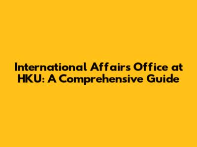 International Affairs Office At HKU: A Comprehensive Guide