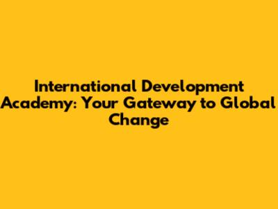 International Development Academy: Your Gateway To Global Change
