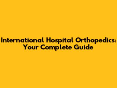 International Hospital Orthopedics: Your Complete Guide