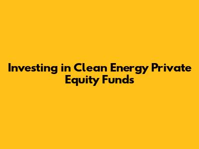 Investing In Clean Energy Private Equity Funds